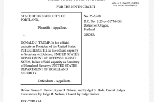 A federal appeals court ruled Monday that President Donald Trump can deploy National Guard troops to Portland, Oregon. The three-judge panel of the U.S. Court of Appeals for the Ninth Circuit voted 2-1 to grant a stay of a lower court’s temporary restraining order that had blocked the deployment. The […]