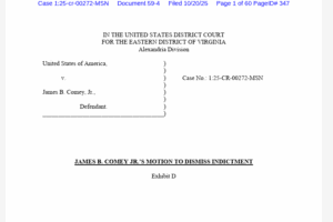 Former FBI Director James B. Comey filed motions on Monday seeking dismissal of federal criminal charges against him, arguing that the indictment represents a “vindictive prosecution” driven by President Donald Trump’s personal hostility and amounts to an “egregious abuse of power” by the federal government. The filing, submitted to U.S. […]